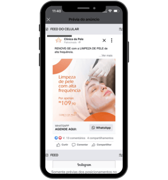 Os anúncios podem ser realizados para ambas plataformas ou individual. Com um excelente criativo que chame atenção do internauta e leve a tomada de decisão para whatsApp business, pagina de vendas ou site.